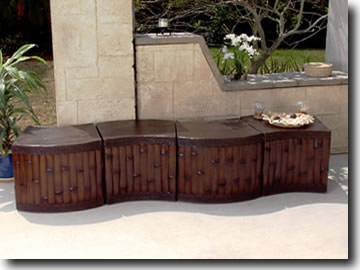 Curved Seat (also may be used as serpentine bench, ottoman, or occassional table): top surface crushed bamboo. 18" deep, 17" high 18" wide at front curve, 22" wide at rear curve. Accent bands are abaca. Custom Cushions Optional; COM available